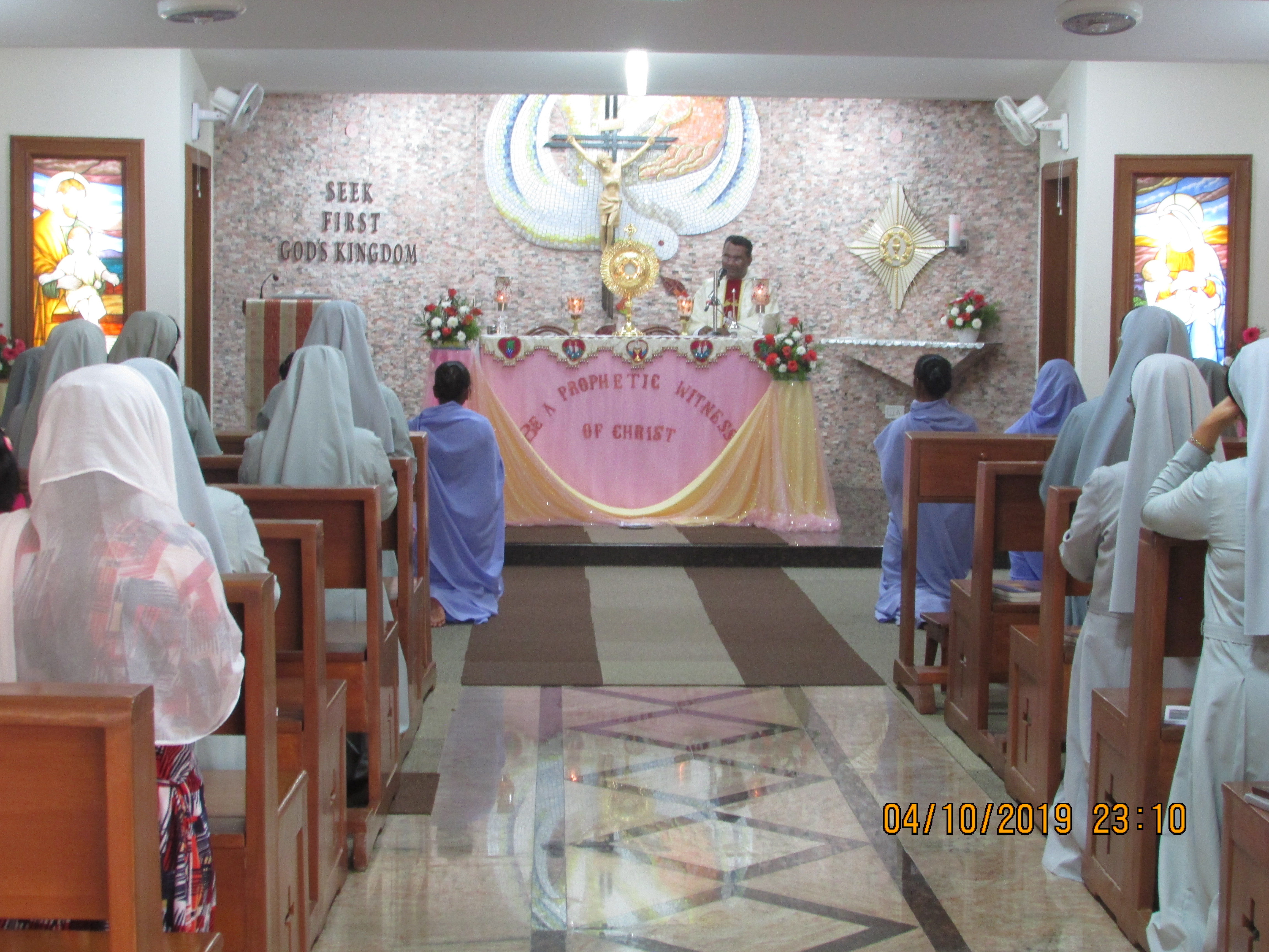Followed by the adoration the sisters proceeded to conference hall in a procession carrying the footprints as a symbol of our missionary journey in different apostolate, imploring the Holy Spirit. As we entered the hall the Regional counselor Sr.M.Alphonsa  Manikhyathan  led us in to prayer and each one of us placed the footprints symbol on the logo. She challenged us with a few reflections: Has our love for God grown cold? How can we be ready 24 into 7 to give the reason for our faith, our love and our choice to be consecrated? etc.